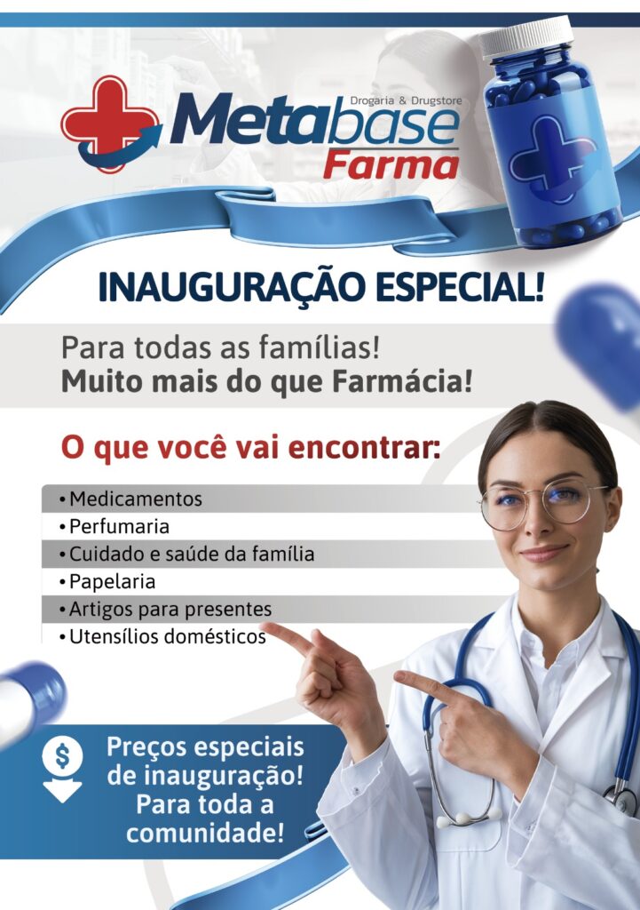 A matriz da Metabase Farma será reinaugurada nesta sexta-feira (5), a partir das 9h, em Itabira. O espaço, localizado na Rua Mestre Emílio, nº 93, no bairro Pará, foi reformulado e agora oferece, além da farmácia, uma papelaria completa, ampliando os serviços para a comunidade.
